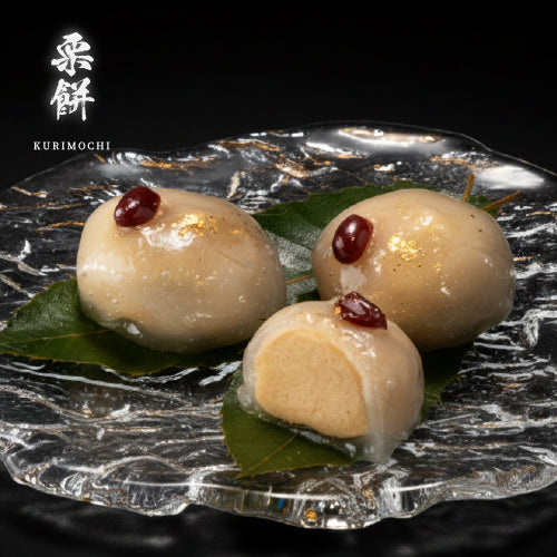 なめらかな栗きんとんに、金箔をあしらった上生菓子。