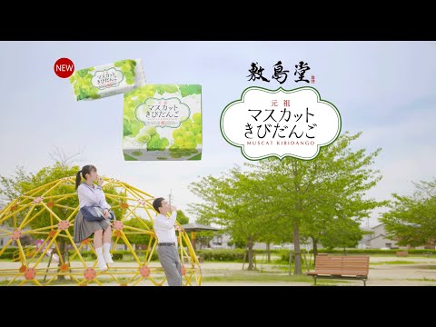 岡山名物「きびだんご」の真ん中に岡山特産のマスカットの果蜜を入れたさわやかな餅菓子です。